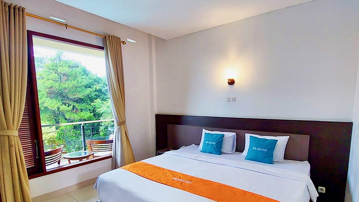 Experience ultimate comfort in the 15 m² Deluxe Double Room featuring a luxurious king-size bed. Enjoy complimentary breakfast, a plasma TV, and a 24-hour water heater. Relax with breathtaking nature views and a direct pool view from your private balcony. Perfect for couples seeking a romantic escape or a relaxing getaway.